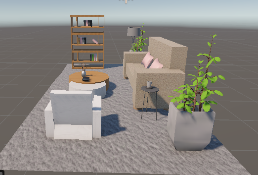 This project is a personal comfort scene created in Unity 6. The scene includes basic 3D primitives, hierarchical objects combined into prefabs, and imported textures and materials. Furniture such as a couch, table, shelf, and decorative elements were constructed using GameObjects and Unity Asset Store resources. This project was built for WebGL and published as part of Lab 1.